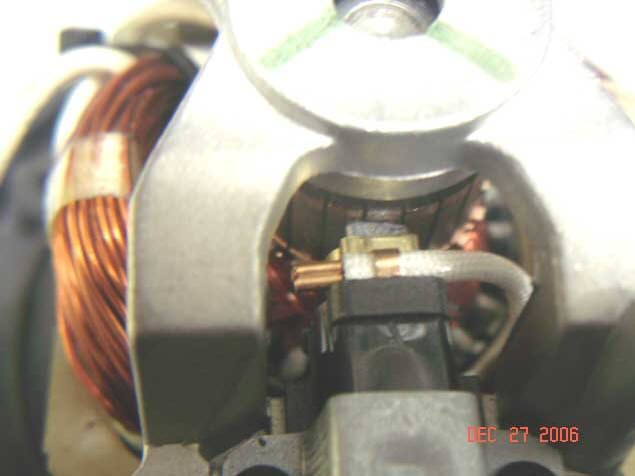 -Here is the brush assembly installed where the blade terminal has been pried out about 1/2 way---but you can’t pry it all the way out until the brush assembly is removed from the motor -Here is the brush holder assembly removed from a motor---and the wire is shown having been successfully removed/pried out from the brush holder without damaging the wire or the terminal end.